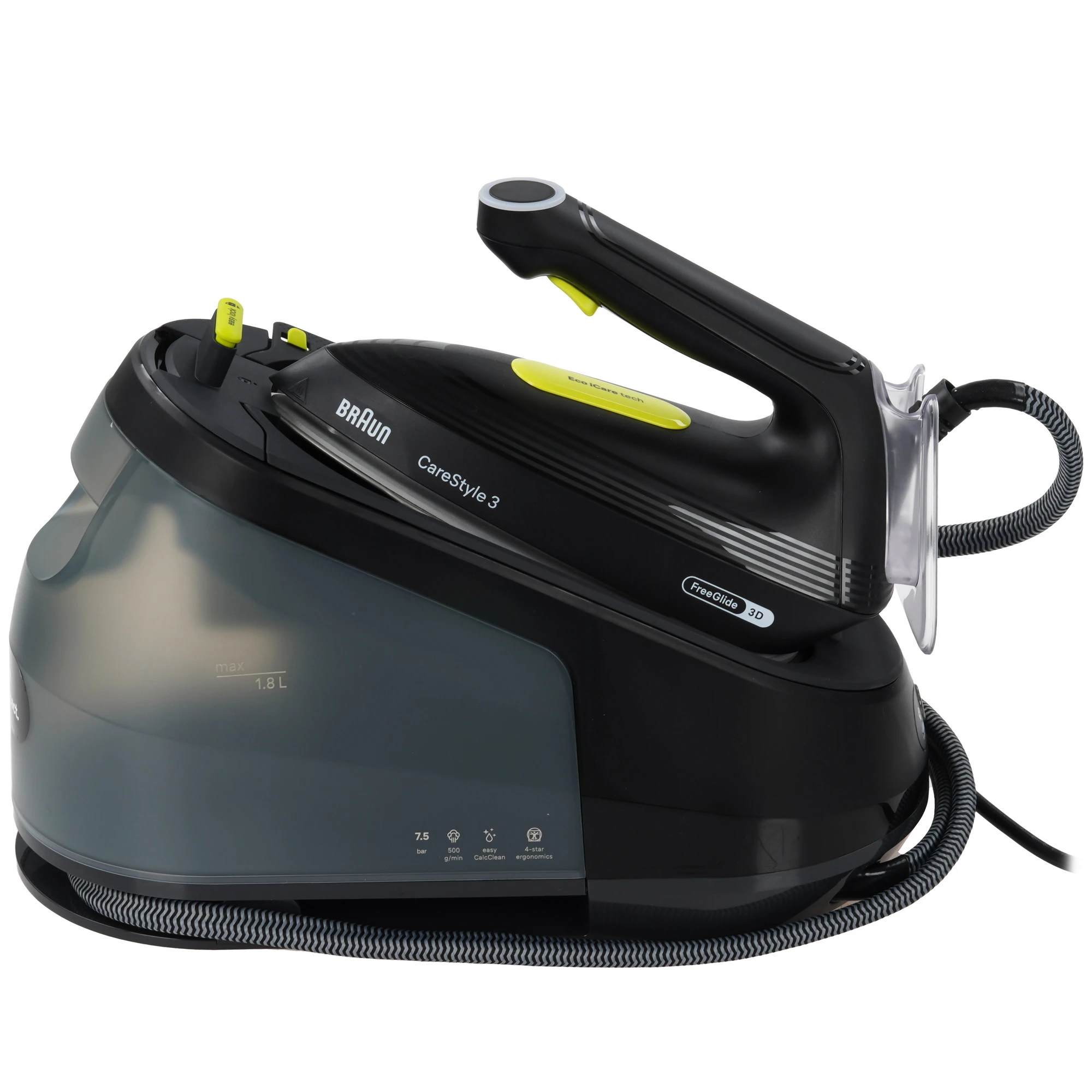 Braun CareStyle 3 — yuqori unumdorlik va ixcham dizaynni o‘zida mujassam etgan zamonaviy parogeneratorli dazmol. DoubleSteam texnologiyasi tufayli u oddiy bug‘li dazmollarga nisbatan ikki barobar ko‘proq bug‘ chiqaradi, bu esa dazmollash jarayonini sezilarli darajada tezlashtiradi. Eco iCare texnologiyasi barcha matolar uchun xavfsiz haroratni avtomatik tanlab, suv va elektr energiyasini tejaydi.