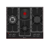 3 та газли конфорка, жумладан тез ва мазали таомлар учун кучли 3.8 кВт WOK конфоркаси,