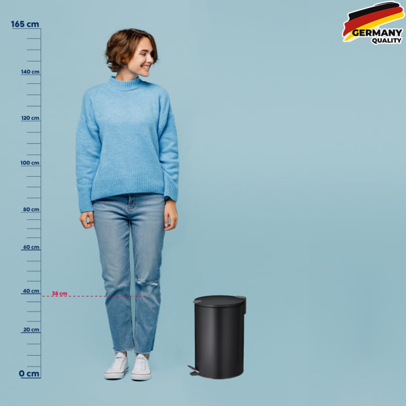Pedal orqali qopqoqni qo‘l tegizmasdan ochish mumkin, bu esa maksimal gigiyenani ta’minlaydi. Yumshoq yopilish mexanizmi qattiq yopilishdagi shovqinni kamaytiradi va mahsulotning xizmat muddatini uzaytiradi. Ichkarida esa tozalash va paketlarni almashtirish uchun qulay olinadigan plastik idish mavjud.