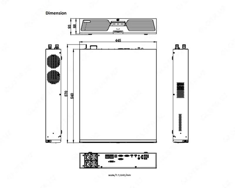Qurilma korpusi 2U formatida ishlab chiqilgan bo‘lib, standart 19 dyuymli server shkaflariga o‘rnatish uchun mos. U 100–240 VAC tarmoqdan quvvat oladi, ishchi harorati −10 °C dan +55 °C gacha bo‘lishi mumkin va ishchi namlik darajasi 10 %–90 % gacha.