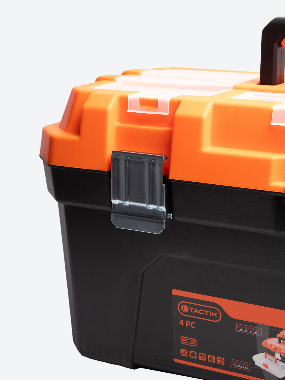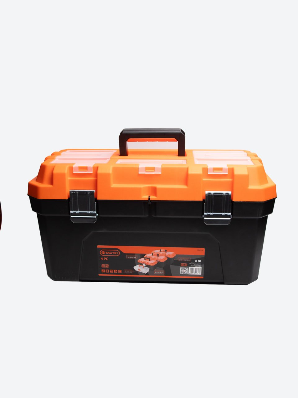 TACTIX 320118-22 — bu mustahkam plastik korpusli asbob yashigi bo‘lib, asboblarni saqlash va tashish uchun qulay va ishonchli yechim hisoblanadi. U uzoq xizmat qiluvchi materiallar va mustahkam dizayni bilan ajralib turadi.