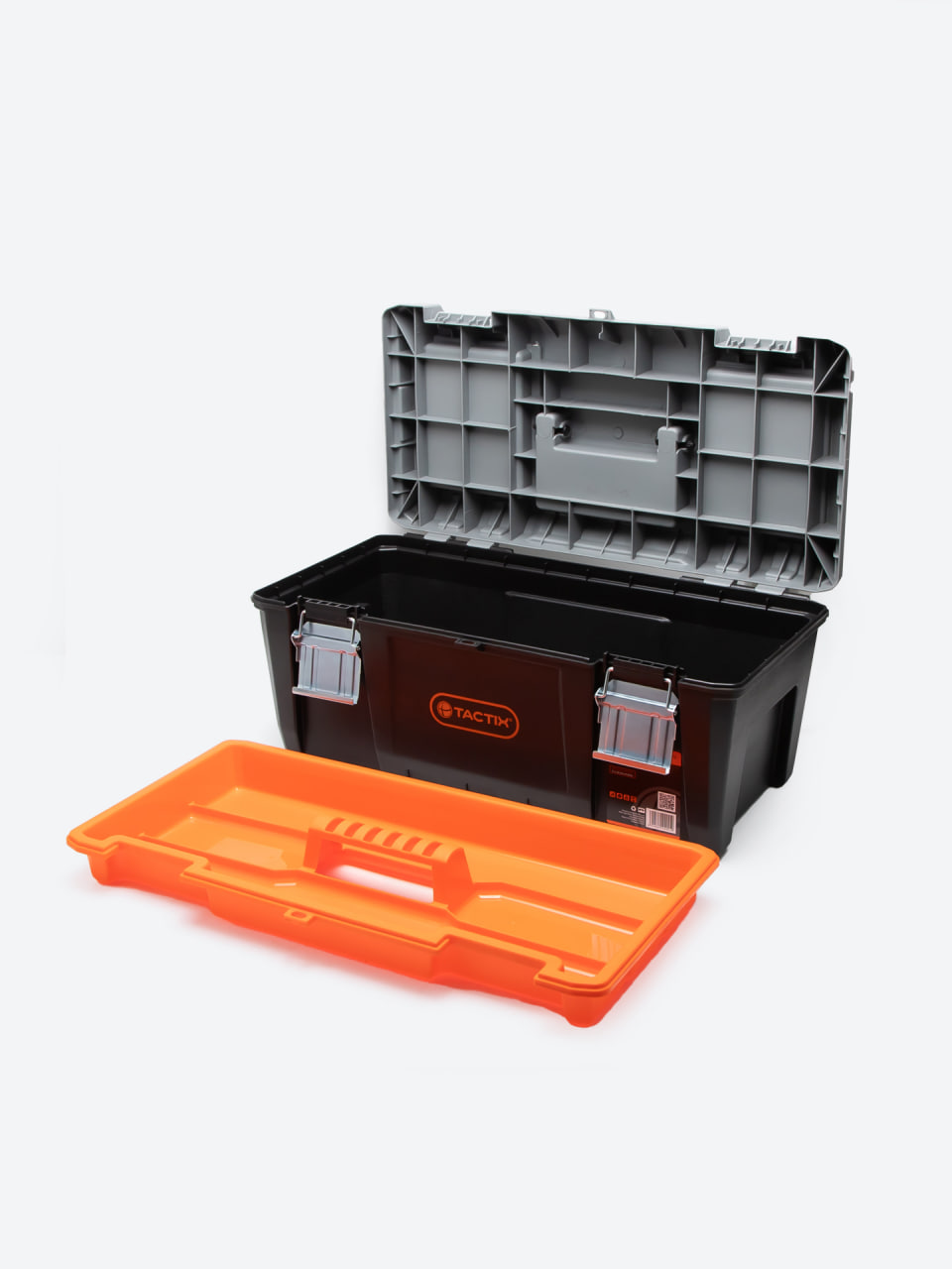 Tactix 320316 — bu mustahkam va amaliy asboblar yashigi, turli qo‘l asboblari va aksessuarlarni tartibli saqlash va tashish uchun mo‘ljallangan. Keng sig‘imi va mustahkam materiali uni professional ustalar va havaskorlar uchun qulay qiladi.