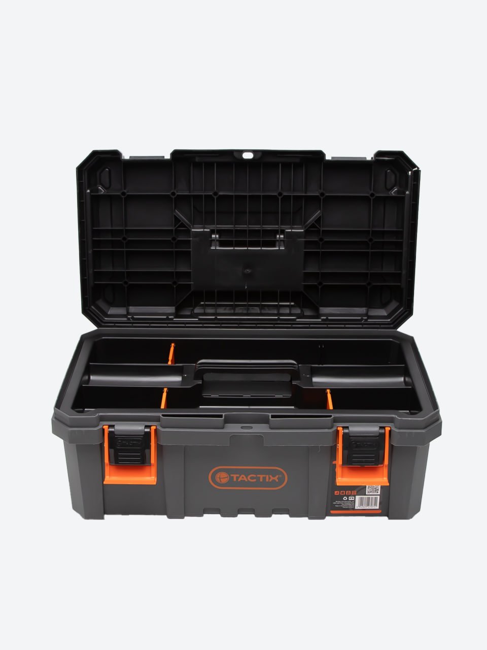 Tactix 320380 — bu mustahkam va ko‘p funksiyali asboblar yashigi, professional ustalar va havaskorlar uchun yaratilgan. Yirik hajmi, ko‘p bo‘linmalari va ergonomik dizayni uni ustaxona, garaj yoki qurilish maydonida asboblarni tartib bilan saqlash va tashish uchun ideal qiladi.