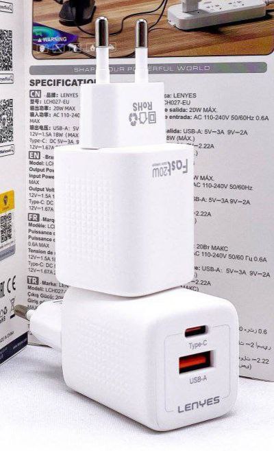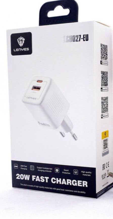 LENYES LCH027-EU 20W – zamonaviy tarmoq zaryadlovchi bo‘lib, Power Delivery 20W yordamida smartfon, planshet va boshqa gadjetlarni tez va xavfsiz zaryadlash imkonini beradi.